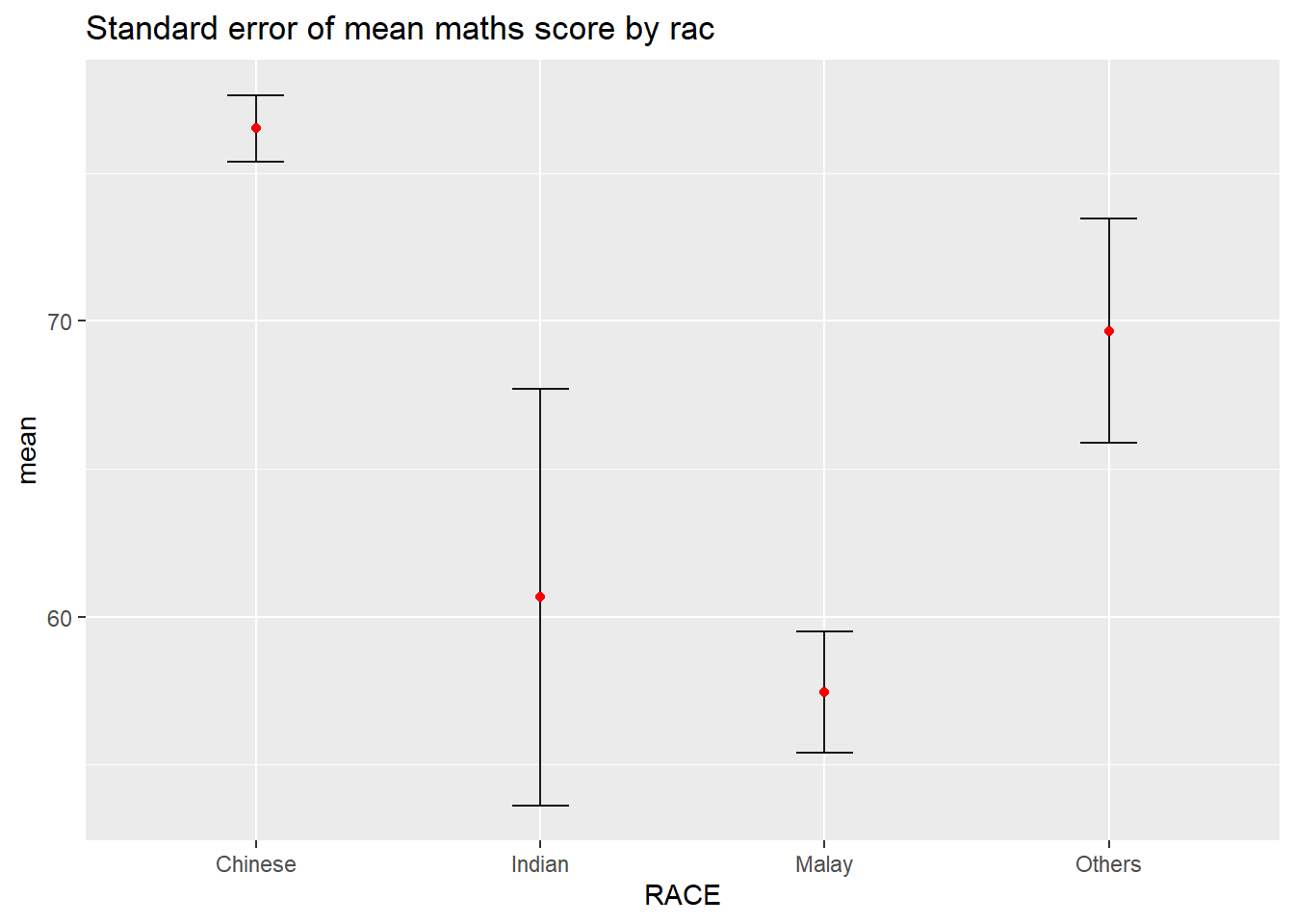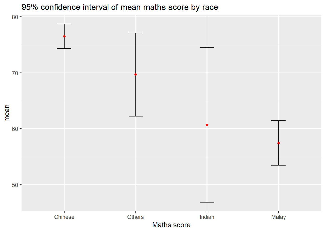 title = "Visualising confidence intervals of mean math score",