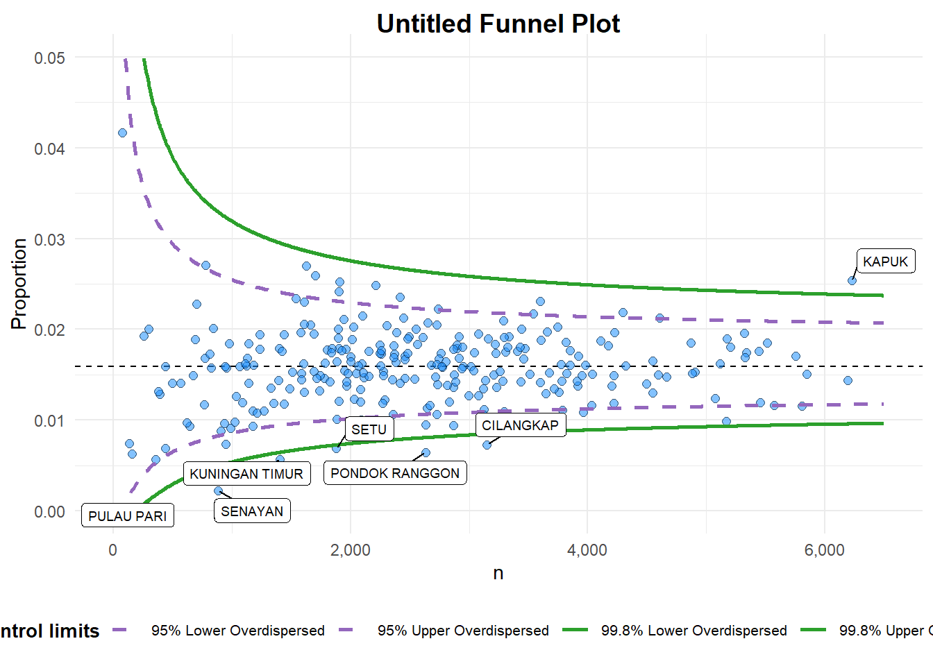 FunnelPlotR methods: The basic plot.