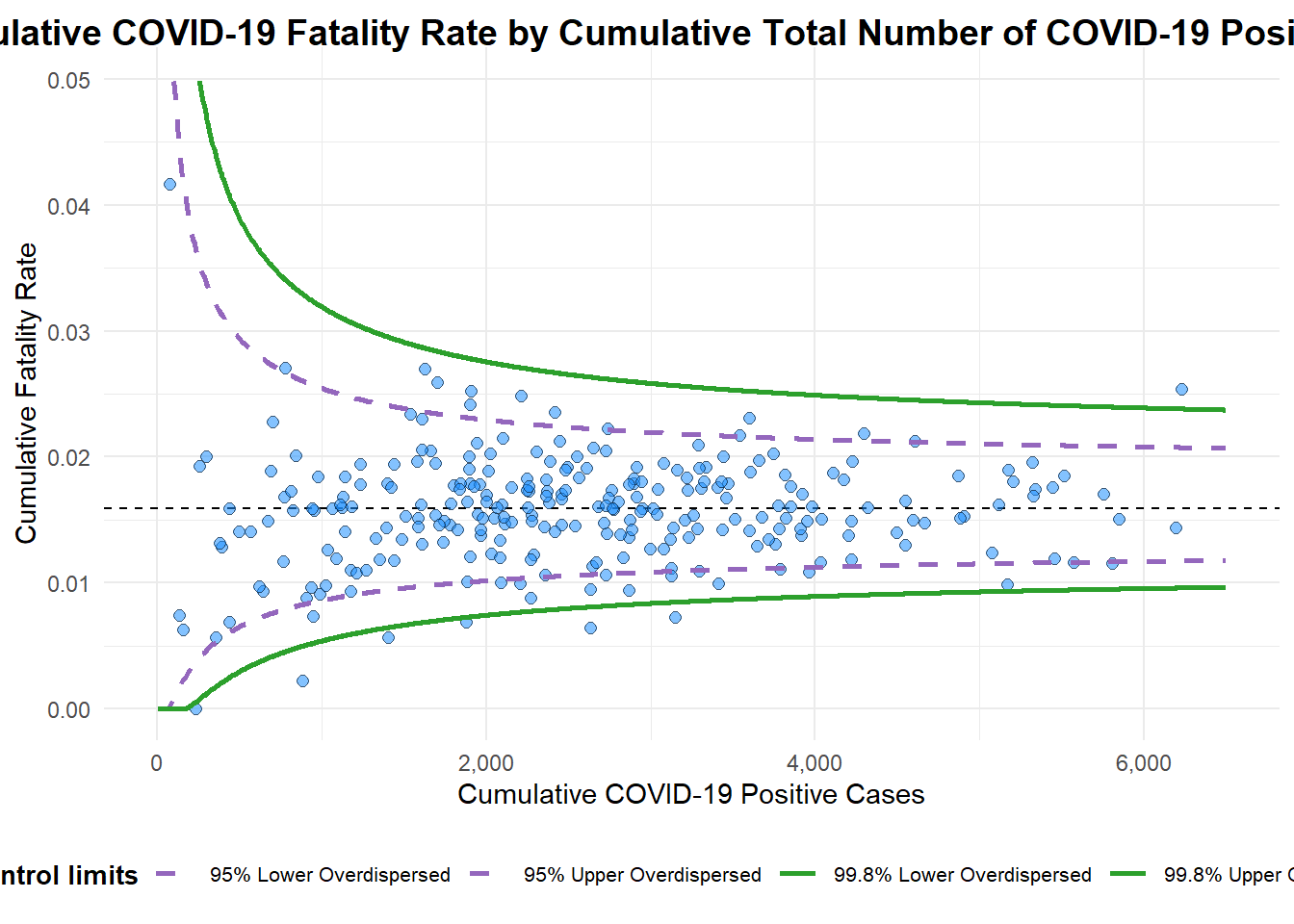 title = "Cumulative COVID-19 Fatality Rate by Cumulative Total Number of COVID-19 Positive Cases", #<<