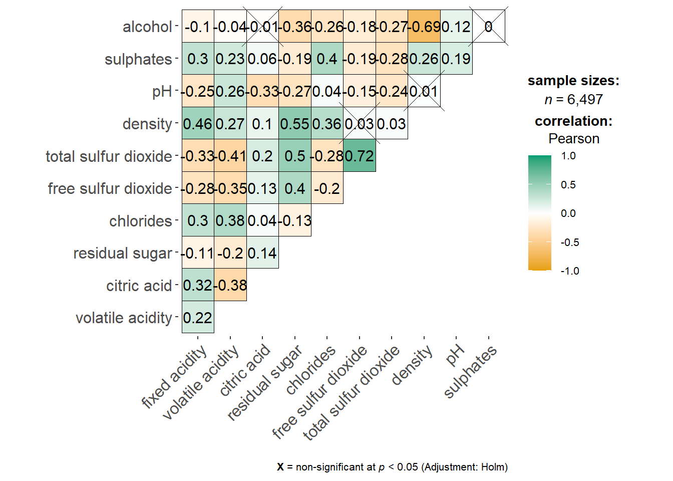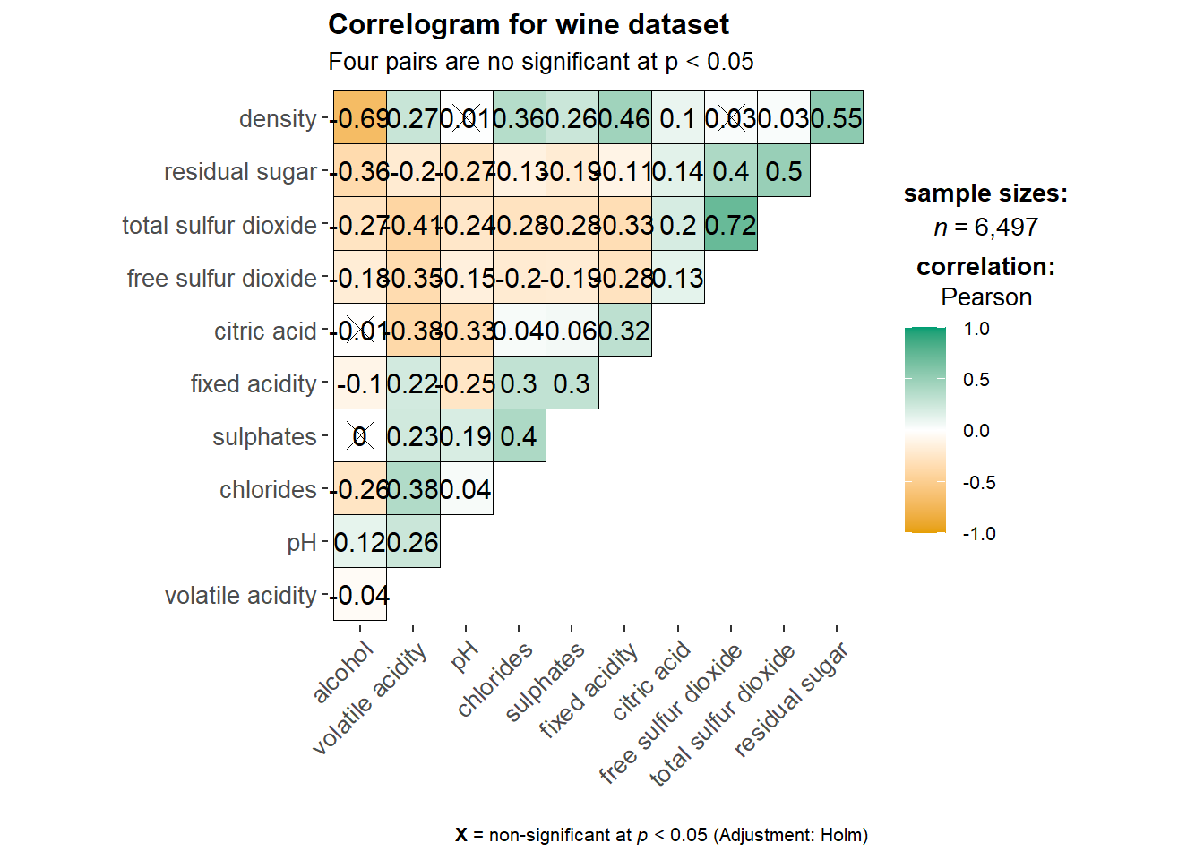 wine <- read_csv("data/wine_quality.csv")Visualising Correlation Matrix: ggcormat()